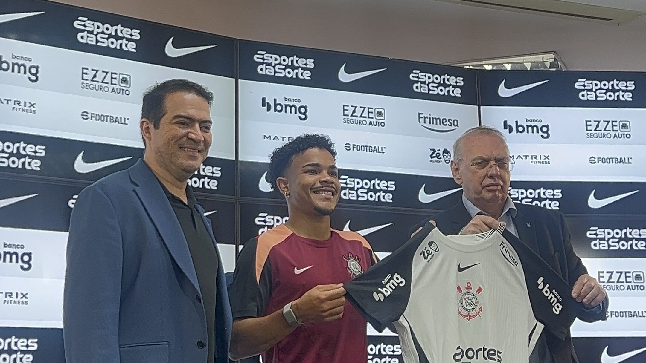 O Corinthians apresentou oficialmente, nesta terça-feira, o atacante Kaio César como novo reforço para a temporada 2026. Em coletiva realizada no CT Dr. Joaquim Grava, o jovem de 21 anos vestiu a camisa alvinegra e expressou sua felicidade em defender o Timão.